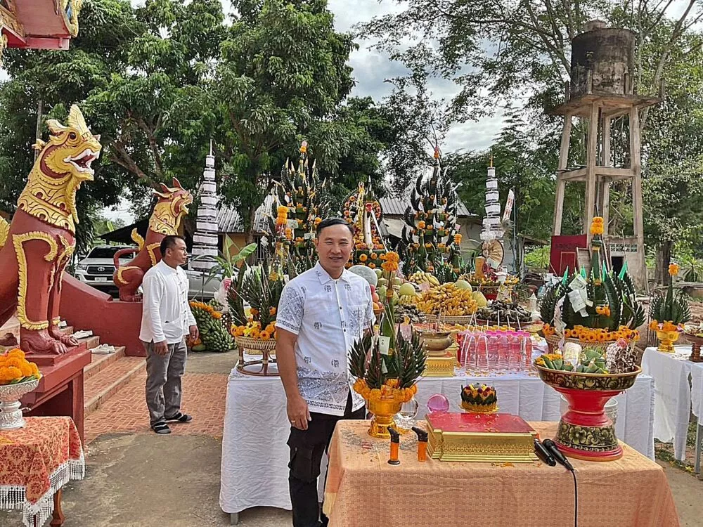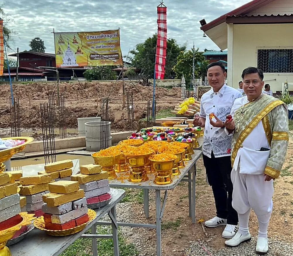 นายธีรศักดิ์ มีสมศักดิ์ ตัวแทน “มูลนิธิธรรมนัสพรหมเผ่า” และ“พรรคกล้าธรรม” ร่วมพิธีวางศิลาฤกษ์ สร้างพระธาตุวัดศรีดอนมูล หมู่ 4 ตำบลร้องเข็ม อำเภอร้องกวาง จังหวัดแพร่ เมื่อวันที่ 6 พฤศจิกายน 2568