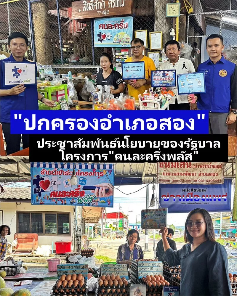 การเมืองสังคม “ปกครองอำเภอสอง” ลงพื้นที่ ประชาสัมพันธ์นโยบายของรัฐบาล โครงการ”คนละครึ่งพลัส” พฤศจิกายน 13, 2025 admin Facebook iconFacebookLINE iconLine Post Views: 134 นายศุภชัย บุญทิพย์ นายอำเภอสอง มอบหมายปลัดอำเภอหัวหน้ากลุ่มงานบริหารงานปกครองอำเภอสอง ปลัดอำเภอและเจ้าหน้าที่ปกครองอำเภอสอง ลงพื้นที่ ประชาสัมพันธ์นโยบายของรัฐบาล โครงการ”คนละครึ่งพลัส”ระหว่างวันที่ 10-14 พฤศจิกายน 2568 วันที่ 10 – 14 พฤศจิกายน 2568 นายศุภชัย บุญทิพย์ นายอำเภอสอง มอบหมายปลัดอำเภอหัวหน้ากลุ่มงานบริหารงานปกครองอำเภอสอง ปลัดอำเภอและเจ้าหน้าที่ปกครองอำเภอสอง ลงพื้นที่ได้ประชาสัมพันธ์นโยบายของรัฐบาล โครงการ”คนละครึ่งพลัส” ณ ตลาดสดขวัญนคร ม.7 ตำบลบ้านกลาง และร้านค้าในพื้นที่ตำบลหัวเมืองและตำบลบ้านหนุน อำเภอสอง จังหวัดแพร่