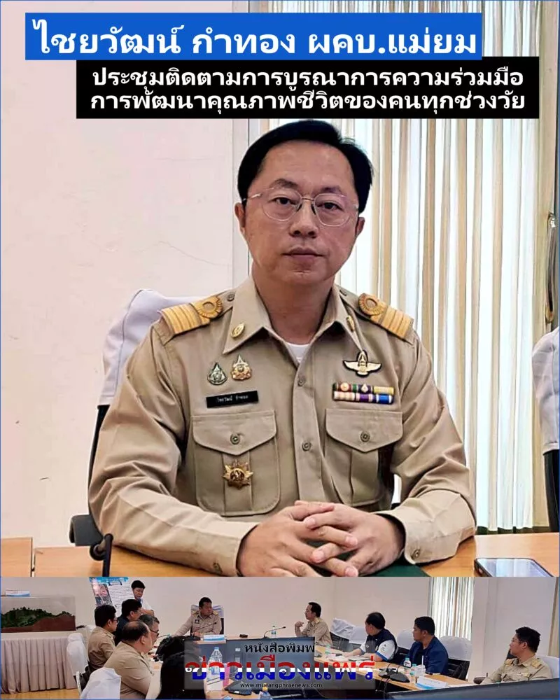 นายไชยวัฒน์ กำทอง ผู้อำนวยการโครงการส่งน้ำและบำรุงรักษาแม่ยม เข้าร่วมประชุมตรวจติดตามการบูรณาการความร่วมมือการพัฒนาคุณภาพชีวิตของคนทุกช่วงวัยในพื้นที่จังหวัดแพร่ ของ นายอัครา พรหมเผ่า รัฐมนตรีว่าการกระทรวงการพัฒนาสังคมและความมั่นคงของมนุษย์ ผู้แทนรองนายกรัฐมนตรีฯ ร่วมกับหน่วยงานที่เกี่ยวข้อง ณ ห้องประชุม โครงการชลประทานแพร่ ตำบลป่าแมต อำเภอเมืองแพร่ จังหวัดแพร่
