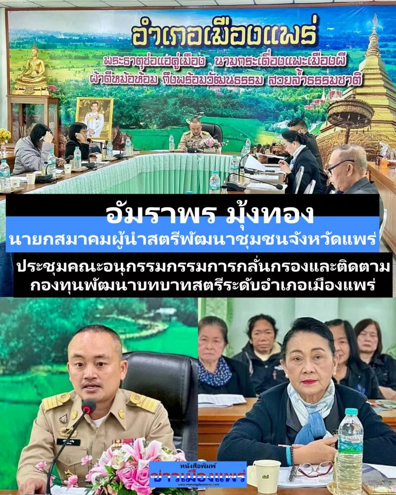 นางอัมราพร มุ้งทอง นายกสมาคมผู้นำสตรีพัฒนาชุมชนจังหวัดแพร่ ร่วมประชุมคณะอนุกรรมการกลั่นกรองและติดตามการดำเนินงาน กองทุนพัฒนาบทบาทสตรีระดับอำเภอเมืองแพร่ ครั้งที่ 1 ประจำปีงบประมาณ พ.ศ. 2569