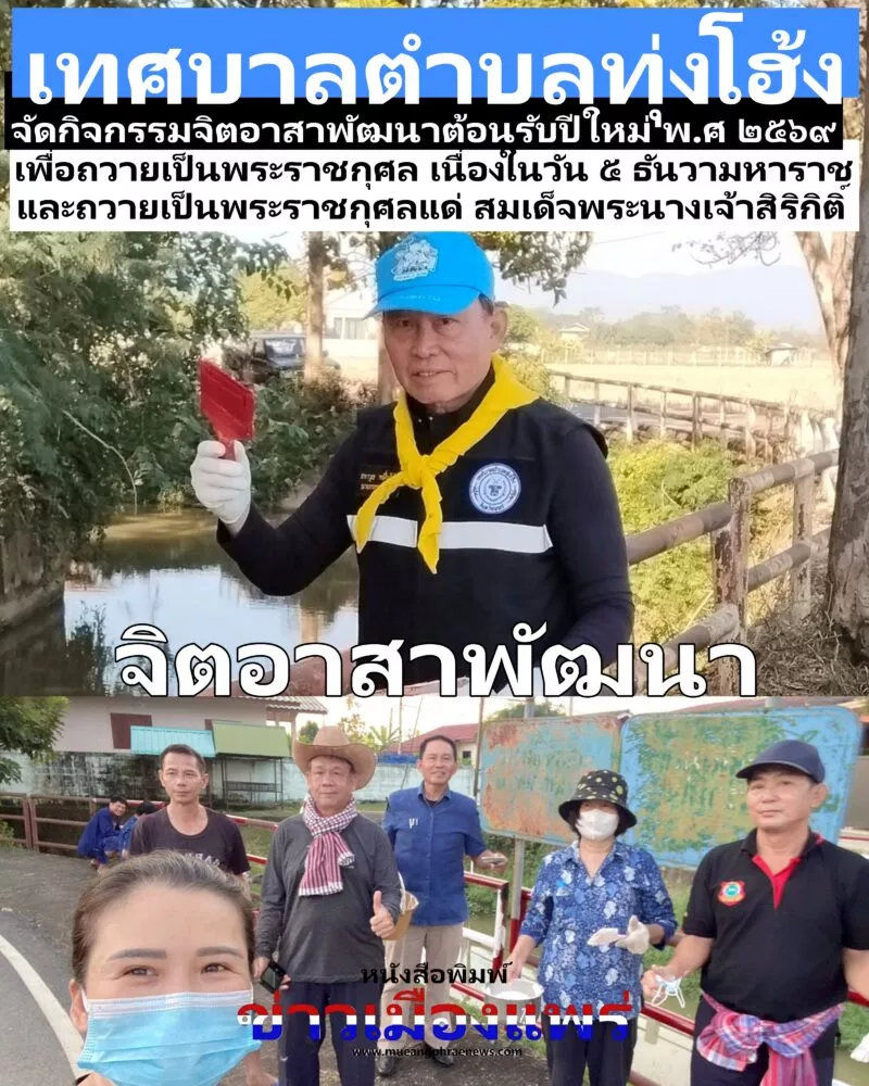เทศบาลตำบลทุ่งโฮ้ง จัดกิจกรรมจิตอาสาพัฒนา ทำความดีต้อนรับปีใหม่ พ.ศ ๒๕๖๙ เพื่อถวายเป็นพระราชกุศลเนื่องในวัน ๕ ธันวามหาราช และถวายเป็นพระราชกุศลแด่สมเด็จพระนางเจ้าสิริกิติ์ พระบรมราชินีนาถ พระบรมราชชนนีพันปีหลวง