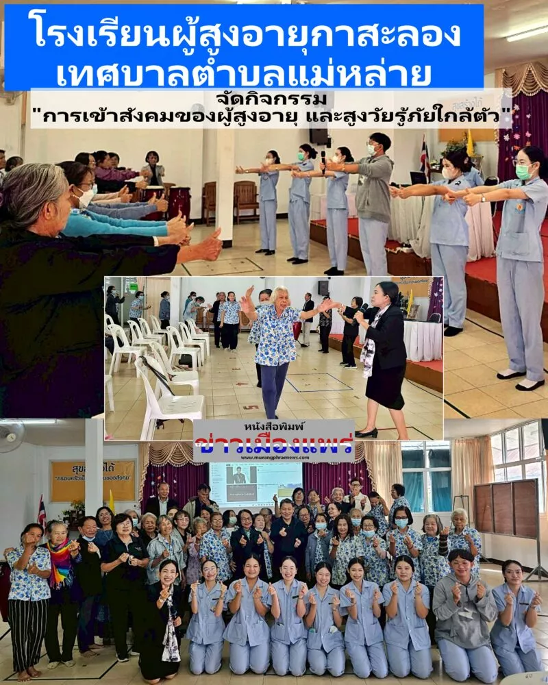 “โรงเรียนผู้สูงอายุกาสะลอง เทศบาลตำบลแม่หล่าย” จัดกิจกรรมในวันเปิดเทอมวันแรก ในหัวข้อ “การเข้าสังคมของผู้สูงอายุ และสูงวัยรู้ภัยใกล้ตัว” มี นางสาวนพมาศ อินจันทร์(น้องต่าย)และคณะ เป็นวิทยากร