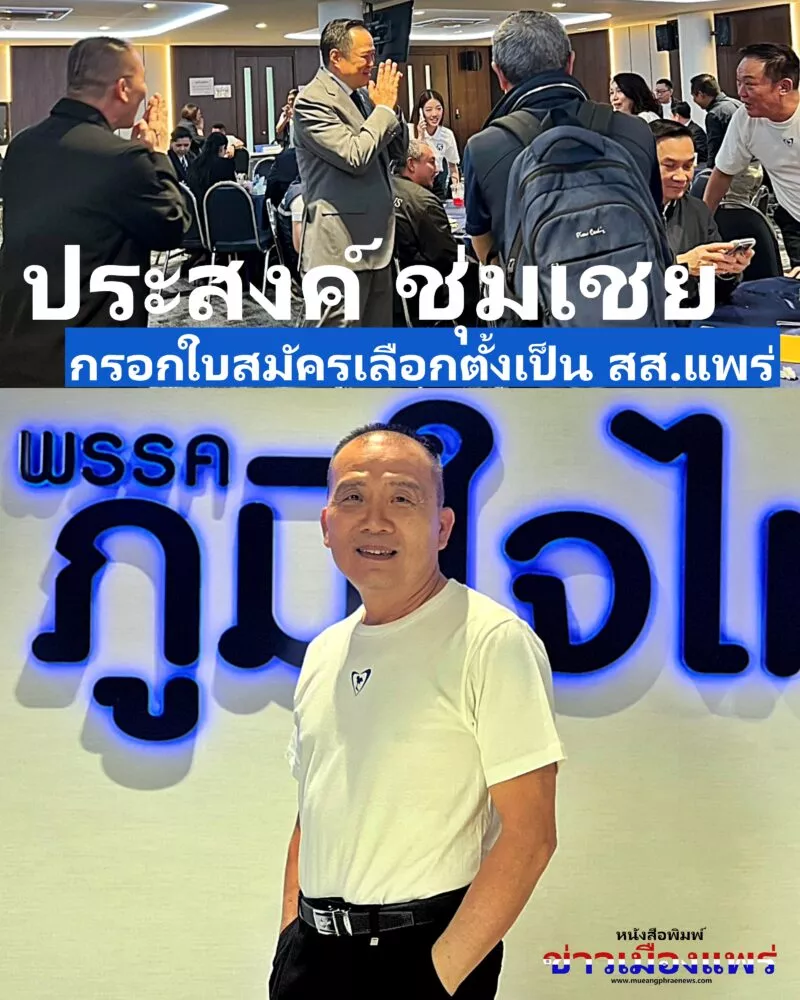 ผู้สื่อข่าว รายนงานว่า เมื่อวันที่ 15 ธันวาคม 2568 นายประสงค์ ชุ่มเชย อดีตผู้สมัคร สส.แพร่ เขตเลือกตั้งที่ 3 ได้เดินทางไปกรอกใบสมัครลงรับเลือกตั้งเป็น สส.แพร่ ที่ พรรคภูมิใจไทย กรุงเทพ และได้พบปะพูดคุยกับผู้บริหารพรรค ส่วนรายละเอียดยังไม่มีการเปิดเผยเพิ่มเติมออกมา