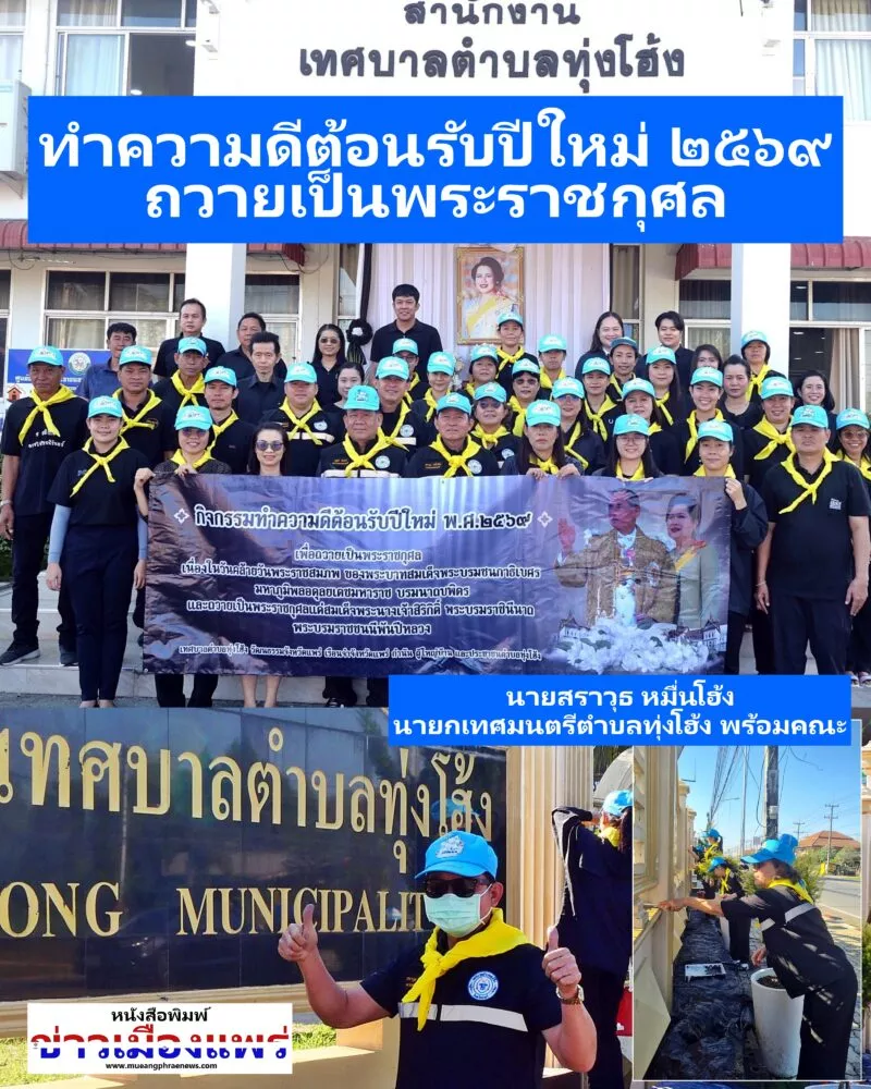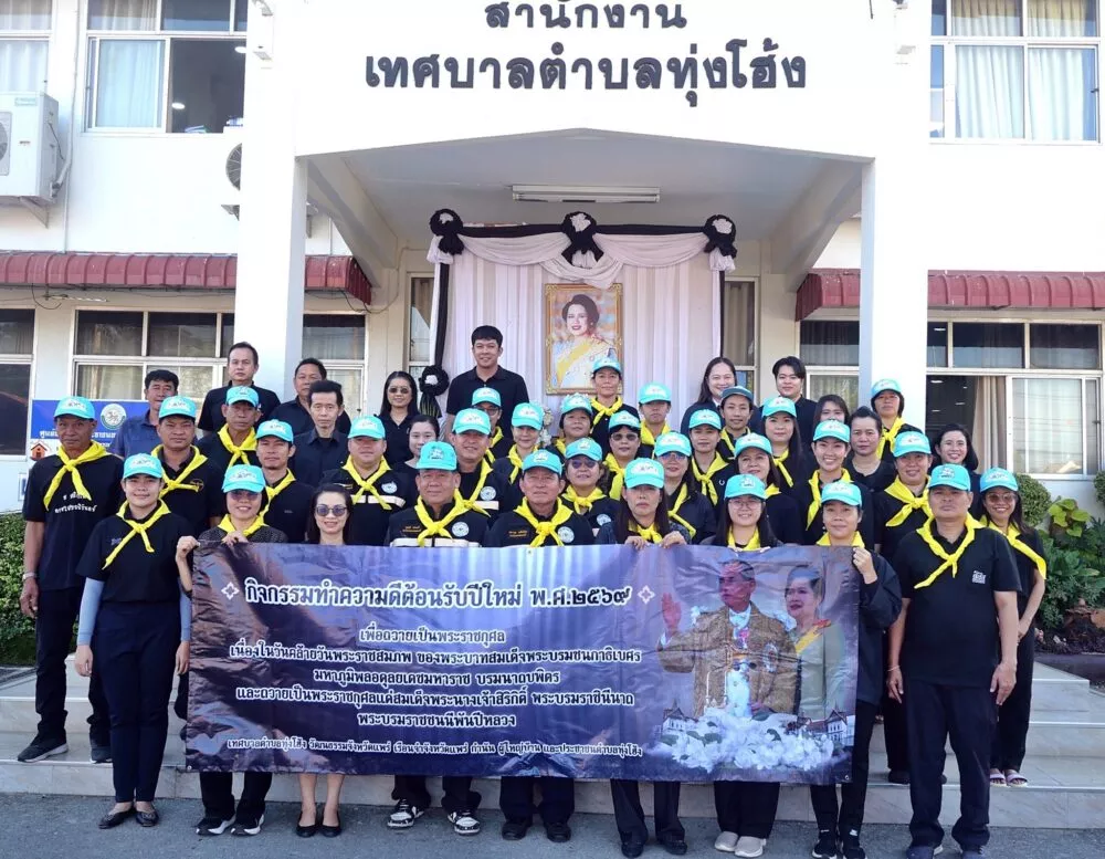 วันพฤหัสบดี ที่ 18 ธันวาคม 2568 เวลา 09.00 น. นายสราวุธ หมื่นโฮ้ง นายกเทศมนตรีตำบลทุ่งโฮ้ง พร้อมด้วยคณะผู้บริหาร สมาชิกสภาเทศบาลฯ ข้าราชการ หน้าส่วนราชการในสังกัด เจ้าหน้าที่ พนักงานเทศบาลตำบลทุ่งโฮ้ง ร่วมทำความดีต้อนรับปีใหม่ พ.ศ 2569 เพื่อถวายเป็นพระราชกุศล เนื่องในวันคล้ายวันพระราชสมภพพระบาทสมเด็จพระบรมชนกาธิเบศร มหาภูมิพลอดุลยเดชมหาราช บรมนาถบพิตร(5ธันวาคม) และถวายเป็นพระราชกุศลแด่สมเด็จพระนางเจ้าสิริกิติ์ พระบรมราชินีนาถ พระบรมราชชนนีพันปีหลวง ณ เทศบาลตำบลทุ่งโฮ้ง