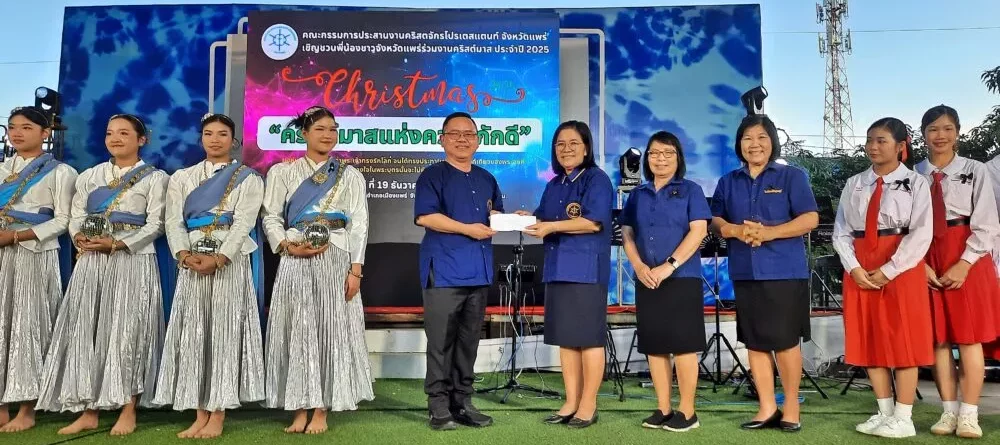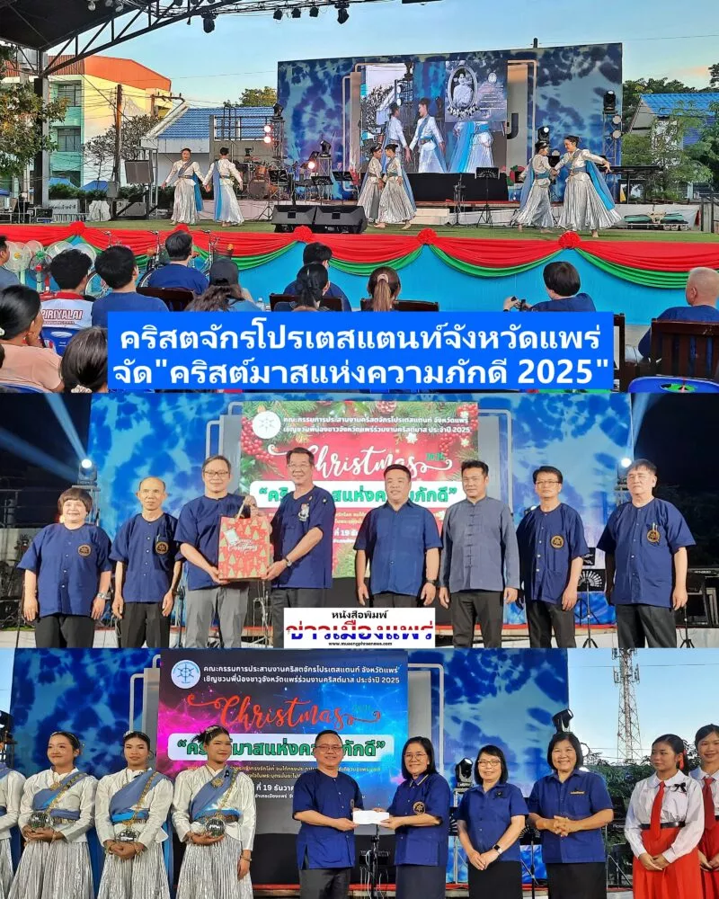 วันที่ 19 ธันวาคม 2568 เวลา 17.00 น.นายสมชัย เลิศประสิทธิพันธ์ผู้ว่าราชการจังหวัดแพร่ ได้เป็นประธานเปิดกิจกรรม “คริสต์มาสแห่งความภักดี 2025” จัดโดย คณะกรรมการประสานงานคริสตจักรโปรเตสแตนท์จังหวัดแพร่ มี อาจารย์ สุรเชษฐ์ ภิมาลย์ เป็นประธาน ณ กาดสามวัย อำเภอเมืองแพร่ จังหวัดแพร่