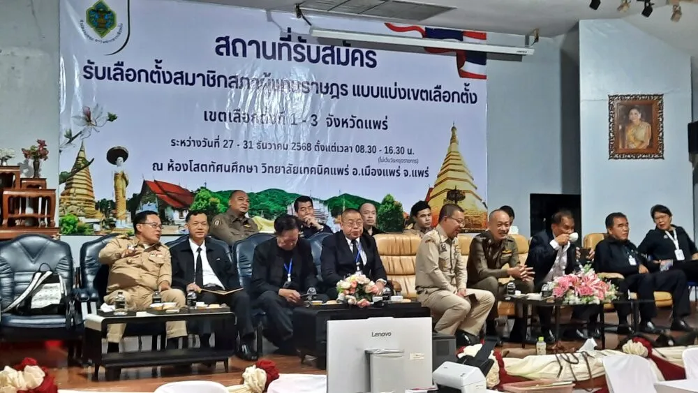 ผู้สื่อข่าวรายงานว่า เมื่อวันที่ 27 ธันวาคม 2568 เวลา 08.30 น.นายสมชัย เลิศประสิทธิพันธ์ ผู้ราชการจังหวัดแพร่ มอบหมายให้ นายชัยสิทธิ์ ชัยสัมฤทธิ์ผล รองผู้ว่าราชการจังหวัดแพร่ พร้อมกับ นายชนวิท พิมพิลา ผู้อำนวยการการเลือกตั้งประจำจังหวัดแพร่ร่วม เป็นสักขีพยานในการเปิดรับสมัครรับเลือกตั้ง สส.แพร่ ของ กกต.ประจำเขตเลือกตั้งที่ 1 เขตเลือกตั้งที่ 2 และเขตเลือกตั้งที่ 3 จังหวัดแพร่ ณ ห้องประชุมวิทยาลัยเทคนิคแพร่ ตำบลในเวียง อำเภอเมืองแพร่ จังหวัดแพร่
