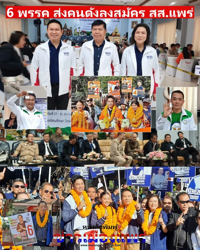 รับสมัครรับเลือกตั้ง สส.แพร่ ภม. พท. กธ. ปชน. ปชป. และ พปชร. 6 พรรคการเมืองดังส่งคนดังลงสู้ศึกเลือกตั้งพร้อมหน้า ผอ.กกต.เผยช่วงเช้าการรับสมัครมีความเรียบร้อย ยังไม่พบมีการร้องเรียนการละเมิดกฎหมายเลือกตั้ง ขณะที่เขตเลือกตั้งที่ 1ยังไม่มีชื่อ หมอทศ สส.แพร่หลายสมัย