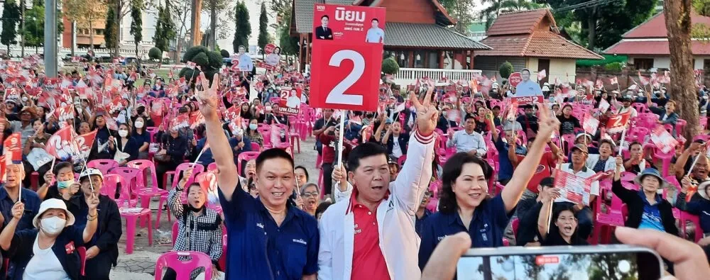 ผู้สมัครพรรคเพื่อไทยจังหวัดแพร่ ภูวษา-นิยม-วรวัจน์ ขึ้นเวทีปราศรัยที่ สนามหลวง ท่ามกลางชาวบ้านเข้าร่วมฟังการปราศรัยแน่นพื้นที่ พร้อมชูสองนิ้วเลือกเบอร์ 2 ยกทีม และหนุน “ยศชนัน”เบอร์ 9 นั่งนายกรัฐมนตรี มั่นใจพรรคเพื่อไทยทำให้ชาวบ้านอยู่ดีกินดีได้