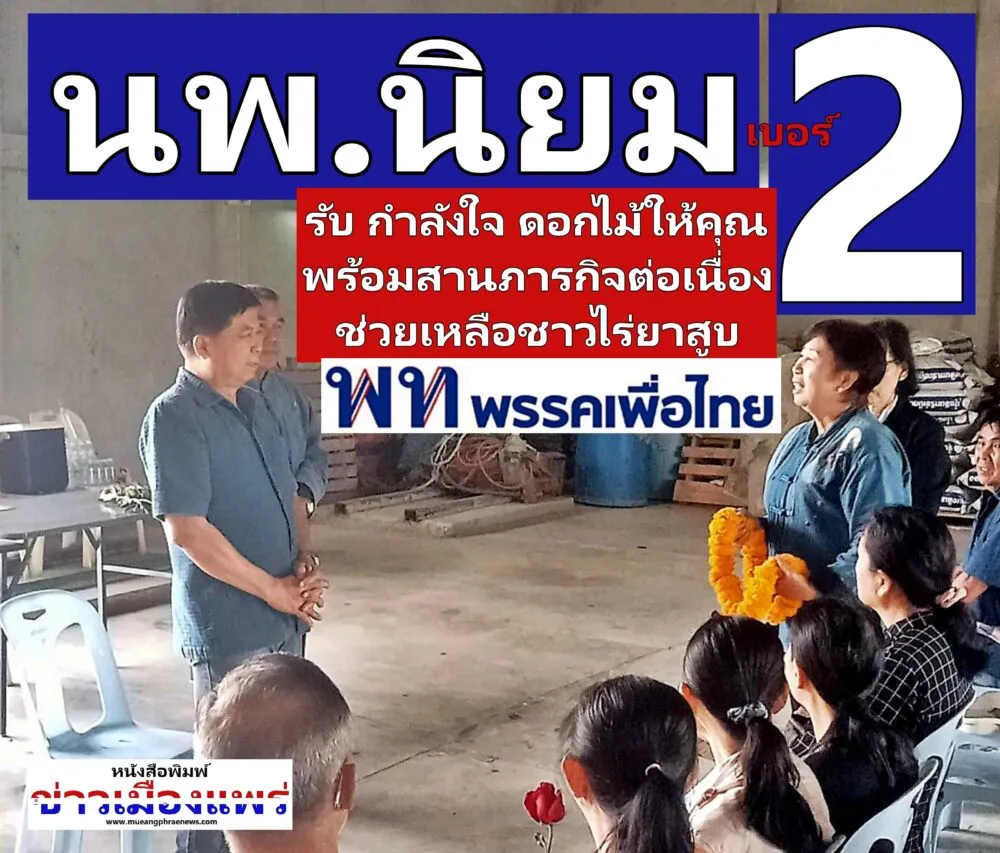 ส่วนทางด้าน นายแพทย์นิยม วิวรรธนดิฐกุล หรือ หมออุ๋ย ได้รับสมัครรับเลือกตั้ง สส.แพร่ พรรคเพื่อไทย ได้เบอร์ 2 เพื่อสานต่อภารกิจยกระดับให้เกษตรกรชาวไร่ยาสูบให้มีความอยู่ดีกินดี และเพื่อ ให้มีความต่อเนื่อง จึงทำให้เกษตรกรชาวไร่ยาสูบแห่มาให้กำลังใจในวันนี้