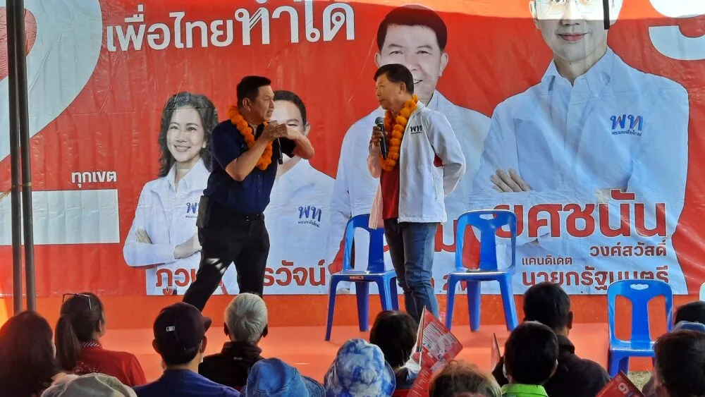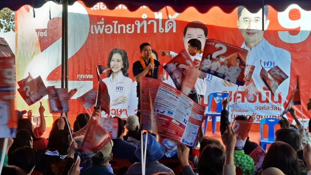 บรรยากาศการปราศรัย เต็มไปด้วยการโต้ตอบอย่างมีอารมณ์ร่วมทั้งผู้เข้าร่วมรับฟังและ ผู้สมัคร สส.ที่ปราศรัยอยู่บนเวทีพูดถึงนโยบายที่จะยกระดับความเป็นอยู่ของพี่น้องประชาชนให้ดียิ่งขึ้นของพรรคเพื่อไทย อาทิ นโยบายกำไรสินค้าเกษตร 30 เปอร์เซนต์ ล้างหนี้ทั้งระบบ หวยเกษียณ คนไทยไร้จน นโยบายยิ่งกว่าพลัส 70/30 รัฐจ่ายให้ประชาชน 70 เปอร์เซ็นต์ และสร้างเศรษฐีเงินล้านวันละ 9 คน เป็นต้น