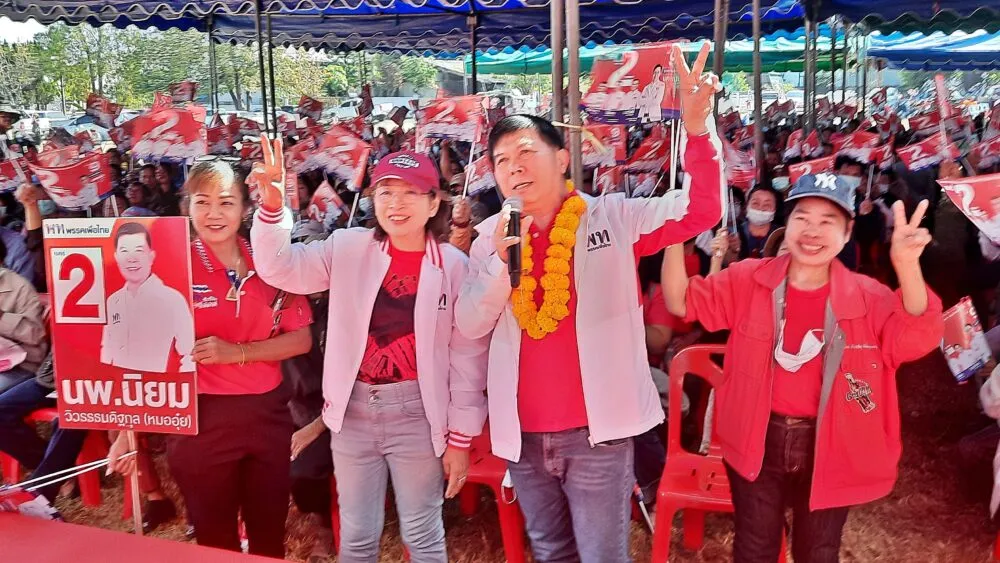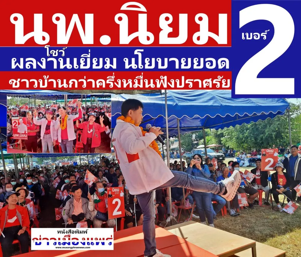 “นพ.นิยม”เบอร์ 2 เปิดปราศรัย อ.ร้องกวาง ชาวบ้านแห่ฟังกว่าครึ่งหมื่น โชว์ผลงานเยี่ยม-นโยบายยอด พรรคเพื่อไทย ส่วนปาตี้ลิสต์พิจารณากาเบอร์ 9 ให้”ยศชนัน”นั่งนายกรัฐมนตรี