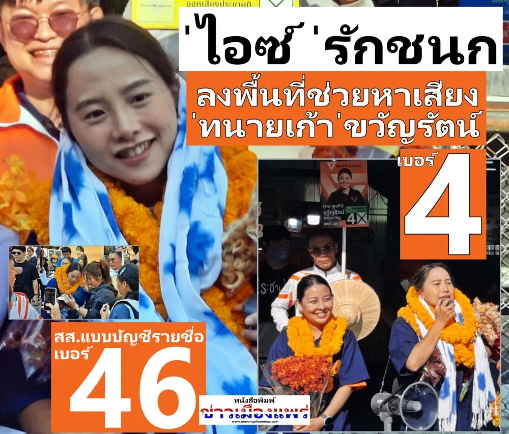 ่ไอซ์ ่รักชนก  ศรีนอก ผู้สมัคร สส.แบบบัญชีรายชื่อ พรรคประชาชน ลงพื้นที่หาเสียงช่วยผู้สมัคร สส.แพร่  ขอเสียงชาวแพร่หนุน ขวัญรัตน์  พนมขวัญ เบอร์ 4 เลือกปาตี้ลิสต์ เบอร์ 46  พร้อมวางหมุดหมายแก้ไขกติกาในสังคมให้อยู่ร่วมกันได้อย่างเป็นธรรม และให้องค์กรอิสระอยู่ข้างพ่อแม่พี่น้องประชาชน