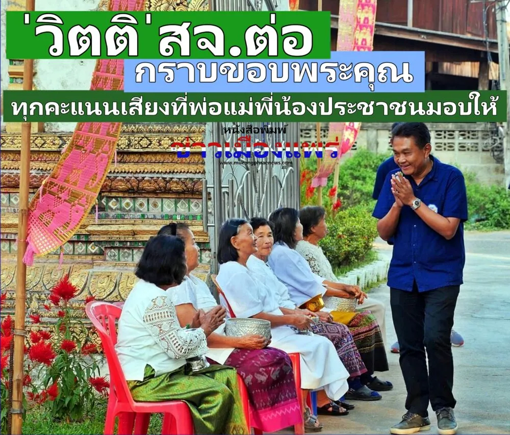 นายวิตติ แสงสุพรรณ ผู้สมัคร สส.แพร่ เบอร์ 4 เขตเลือกตั้งที่หนึ่ง พรรคกล้าธรรม ได้ลงพื้นที่กล่าวขอบคุณจากใจถึงพ่อแม่พี่น้องประชาชนทุกคะแนนเสียงที่ได้เลือกตนเองในการเลือกตั้ง สส.ในครั้งที่ผ่านมานี้ แม้ว่าผลการเลือกตั้งครั้งนี้จะไม่เป็นไปตามที่ได้หวังก็ตาม แต่ทุกคะแนนเสียงที่พี่น้องประชาชนได้มอบให้ ได้ให้ความไว้วางใจ จะเป็นพลังใจที่มีคุณค่าเป็นอย่างยิ่ง ที่จะทำงานให้กับประชาชนชาวแพร่ต่อไป