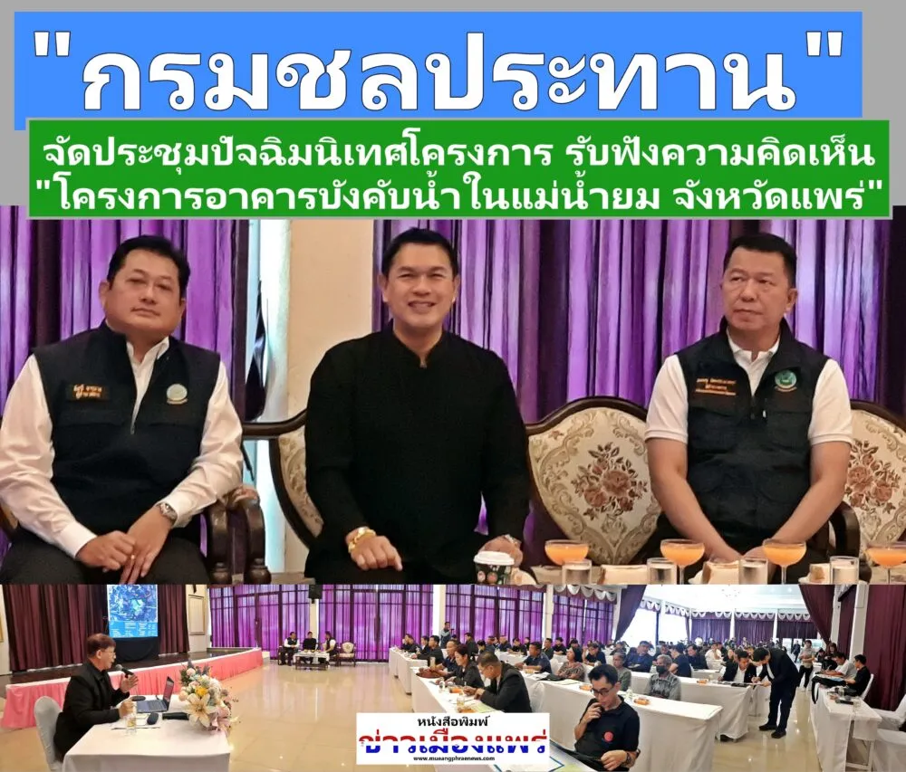 วันที่ 25 กุมภาพันธ์ 2569 เวลา 09.30 น. นายคุณากร คชหิรัญ รองผู้ว่าราชการจังหวัดแพร่ เป็นประธานในพิธีเปิดการประชุมปัจฉิมนิเทศ งานจ้างสำรวจ ออกแบบ โครงการอาคารบังคับน้ำในแม่น้ำยม จังหวัดแพร่ อาคารบังคับน้ำบ้านหาดอ้อน อ.วังชิ้น จ.แพร่ และอาคารบังคับน้ำบ้านวังน้ำเย็น อ.ลอง จ.แพร่ มีนายพิเชษฐ รัตนประสาทกุล ผู้อำนวยการสำนักออกแบบวิศวกรรมและสถาปัตยกรรม และนายนายอัสนี จารุชาต ผู้อำนวยการโครงการชลประทานแพร่ ให้การต้อนรับ พร้อมด้วย โดยมีหัวหน้าส่วนราชการ ผู้บริหารองค์กรปกครองส่วนท้องถิ่น ผู้นำชุมชน และผู้มีเกียรติจาก จังหวัดแพร่ เข้าร่วมประชุมฯ ณ ห้องประชุมโรงแรมอมรรักษ์ อ.เมืองแพร่ จ.แพร่
