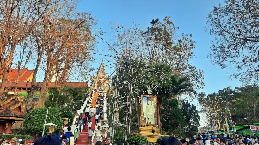 นายอนุทิน ชาญวีรกูล นายกรัฐนตรี ประธานในพิธี พร้อมคณะได้ เดินทางถึง วัดพระธาตุช่อแฮ พระอารามหลวง ณ บริเวณซุ้มประตูทางเข้าวัดพระธาตุช่อแฮ ท่ามกลางประชาชนที่มารอต้อนรับตลอดสองข้างทาง พร้อมกับร่วมถ่ายภาพด้วยกัน ต่อจากนั้น ได้ขึ้นรถราง เพื่อไปบนวัดพระธาตุช่อแฮ ที่ซุ้มประตูศรีวิชัย บันไดเสือ โดยมีพระโกศัยเจติยารักษ์ รองเจ้าคณะจังหวัดแพร่ เจ้าอาวาสวัดพระธาตุช่อแฮ รอประจำจุดอยู่ก่อนแล้ว เพื่อรอรับผ้าห่มพระธาตุช่อแฮ ที่รองผู้ว่าราชการจังหวัดแพร่ พร้อมหัวหน้าส่วนราชการจังหวัดแพร่ อัญเชิญด้วยการเดินขึ้นมาจากเชิงบันไดเสือ เพื่อให้นายอนุทิน ชาญวีรกูล นายกรัฐมนตรี ประธานในพิธี พร้อมคณะ รับผ้าห่มพระธาตุช่อแฮ