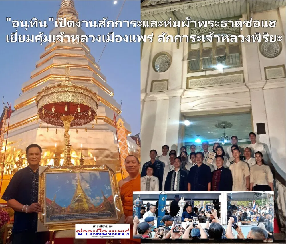 อนุทิน ชาญวีรกูล นายกรัฐมนตรี เป็นประธานพิธีสักการะและห่มผ้าพระธาตุช่อแฮ เมืองแพร่แห่ตุงหลวง ประจำปี 2569 นางสาวธนนนท์ นิรามิษที่ปรึกษากิตติมศักดิ์สมาคมแม่บ้านมหาดไทย และคณะ พร้อมเยี่ยมชมคุ้มเจ้าหลวงเมืองแพร่ และสักการะอนุสาวรีย์เจ้าพิริยเทพวงษ์ ก่อนเดินทางกลับ