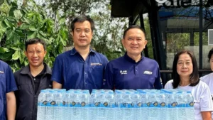 นายเอกชัย วงศ์วรกุล กรรมการผู้จัดการสถานีบริการน้ำมัน PTT Station ในเครือเอปิโตรเลียม และ ประธานสภาวัฒนธรรมจังหวัดแพร่ มอบน้ำดื่มสนับสนุนภารกิจดับไฟป่าลดปัญหาหมอกควันในพื้นที่จังหวัดแพร่