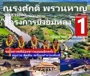 ณรงศักดิ์ พรวนหาญ ผู้สมัคร นายก อบต.แม่ยม เบอร์ 1 ขออาสาเข้าไปสานต่อ”โครงการบึงยมหลง” แหล่งท่องเที่ยวทางธรรมชาติของ ตำบลแม่ยม งบประมาณก่อสร้าง 145 ล้าน