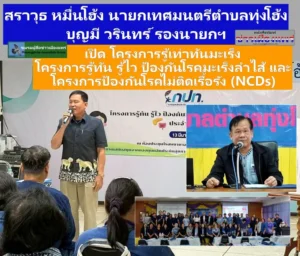 สราวุธ หมื่นโฮ้ง นายกเทศมนตรีตำบลทุ่งโฮ้ง-บุญมี วรินทร์ รองนายกฯ เปิด โครงการรู้เท่าทันมะเร็ง ประจำปีงบประมาณ พ.ศ. 2569, โครงการ รู้ทัน รู้ไว ป้องกันโรคมะเร็งลำไส้ใหญ่ และ ลำไส้ตรง และโครงการ คัดกรองและปรับเปลี่ยนพฤติกรรม เพื่อป้องกันโรคไม่ติดเรื้อรัง (NCDs)