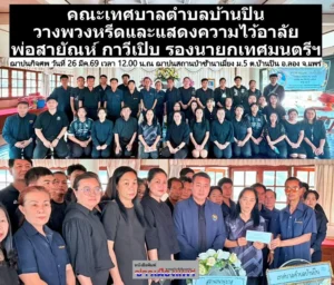 คณะเทศบาลตำบลบ้านปิน วางพวงหรีดและแสดงความไว้อาลัย พ่อสายัณห์ กาวีเปิบ รองนายกเทศมนตรีฯ ฌาปนกิจ วันที่ 26 มีค.69 เวลา 12.00 น. ณ ฌาปนสถานป่าช้านาเมี่ยง ม.5 ต.บ้านปิน อ.ลอง จ.แพร่