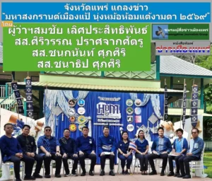 นายสมชัย เลิศประสิทธิพันธ์ ผู้ว่าราชการจังหวัดแพร่ สส.ศิริวรรณ ปราศจากศัตรู สส.ชนกนันท์ ศุภศิริ สส.ชนาธิป ศุภศิริ นายโยธิน ทับทิมทอง ผู้อำนวยการ ททท. สำนักงานแพร่ นางสาวนิสา สังข์ศร ท่องเที่ยวและกีฬาจังหวัดแพร่ นายสุริยา อินต๊ะนอน นายกเทศมนตรีเมืองแพร่ นายดำรงเกียรติ กิตติประภัสร์ นายกเทศมนตรีตำบลเด่นชัย นายเอกชัย หงส์อ้าย นายกเทศมนตรีตำบลวังหงส์ นายนิกร พรมท้าว นายกเทศมนตรีตำบลบ้านเวียง และ นายพิทักษ์ กุดเมือง นายก อบต.นาพูนพูน พร้อมด้วย หัวหน้าส่วนราชการ องค์กรภาคประชาชน และสื่อมวลชน ร่วมการแถลงข่าว “มหาสงกรานต์เมืองแป้ นุ่งหม้อห้อมแต้งามตา ๒๕๖๙” ระหว่างวันที่ ๑๓ – ๒๑ เมษายน ๒๕๖๙ เพื่อรองรับนักท่องเที่ยวกว่า 1 แสนคน และสร้างรายได้ให้ชุมชนกว่า 85 ล้านบาท