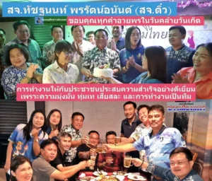 สจ.ทัชฐนนท์ พรรัตน์อนันต์ (สจ.ติ๋ว) ขอบคุณคำอวยพรในวันคล้ายวันเกิด รับการทำงานให้กับพี่น้องประชาชนที่ผ่านมาประสบความสำเร็จอย่างดีเยี่ยม เพราะความมุ่งมั่น เสียสละ และการทำงานเป็นทีม