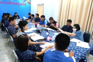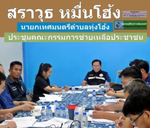 นายสราวุธ หมื่นโฮ้ง นายกเทศมนตรีตำบลทุ่งโฮ้ง ประชุมคณะกรรมการช่วยเหลือประชาชนของเทศบาลตำบลทุ่งโฮ้ง ณ สำนักงานเทศบาลตำบลทุ่งโฮ้ง