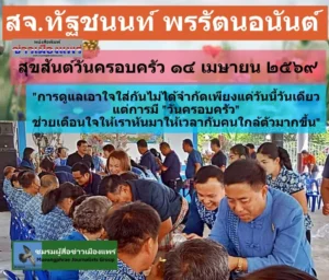 สจ.ทัฐชนนท์ พรรัตนอนันท์(สจ.ติ๋ว) ออกเยี่ยมเยือนพบปะพี่น้องประชาชนในพื้นที่ เผย”การดูแลเอาใจใส่กันไม่ได้จำกัดเพียงแค่วันนี้วันเดียวแต่การมี “วันครอบครัว” ช่วยเตือนใจให้เราหันมาให้เวลากับคนใกล้ตัวมากขึ้น”