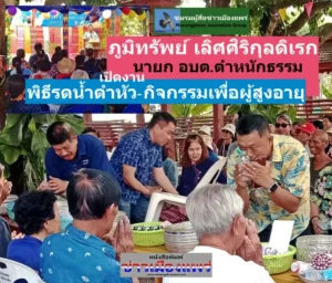 นายภูมิทรัพย์ เลิศศิริกุลดิเรก นายก อบต.ตำหนักธรรม เปิด โครงการผู้สูงอายุสุขใจ สูงวัยอย่างมีคุณค่า และพิธีรดน้ำดำหัวผู้สูงอายุ ประจำปี ๒๕๖๙