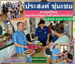 ประสงค์ ชุ่มเชย อวยพรปีใหม่ และมอบเงินขวัญถุงให้กับคณะชาวบ้าน อ.สูงเม่น อ.ลอง อ.วังชิ้น ที่เข้าพบ ณ บ้านพักที่ตำบลเวียงทอง อำเภอสูงเม่น จังหวัดแพร่