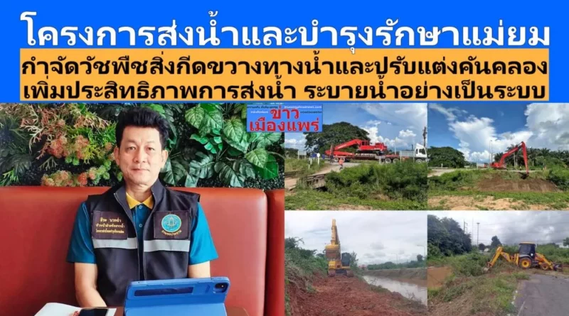 “คบ.แม่ยม”ดำเนินการกำจัดวัชพืชสิ่งกีดขวางทางน้ำและปรับแต่งคันคลองส่งน้ำสายใหญ่ฝั่งซ้าย และขวา เพื่อเพิ่มประสิทธิภาพการส่งน้ำ ระบายน้ำอย่างเป็นระบบ