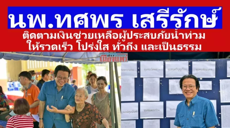 สส.นพ.ทศพร เสรีรักษ์ พบพี่น้องประชาชนที่ประสบอุทกภัย เทศบาลเมืองแพร่ พร้อมติดตาม ผลักดันให้การเยียวยาและฟื้นฟูให้เป็นไปอย่าง รวดเร็ว โปร่งใส ทั่วถึง และเป็นธรรม
