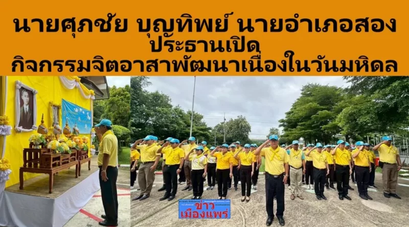 นายศุภชัย บุญทิพย์ นายอำเภอสอง ประธานเปิด กิจกรรมจิตอาสาพัฒนาเนื่องในวันมหิดล ณ โรงพยาบาลส่งเสริมสุขภาพตำบลทุ่งน้าว อ.สอง จ.แพร่