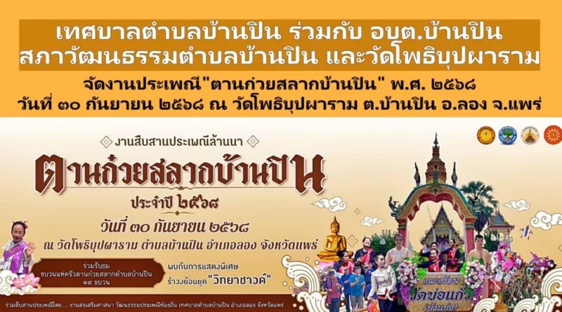 การเมืองสังคม กันยายน 22, 2025 admin เทศบาลตำบลบ้านปิน-อบต.บ้านปิน สภาวัฒนธรรมตำบลบ้านปิน และวัดโพธิบุปผาราม จัดงาน “ตานก๋วยสลากบ้านปิน”พ.ศ.๒๕๖๘ วันที่ ๓๐ กันยายน ๒๕๖๘ เทศบาลตำบลบ้านปิน ร่ Read More