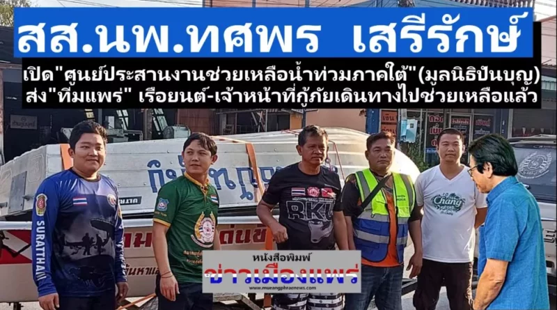 การเมืองสังคม พฤศจิกายน 26, 2025 admin นพ.ทศพร เสรีรักษ์ สมาชิกสภาผู้แทนราษฎรจังหวัดแพร่ เปิด “ศูนย์ประสานงานช่วยเหลือน้ำท่วมภาคใต้”(มูลนิธิปันบุญ) พร้อมส่งทีมแพร่ เรือยนต์-เจ้าหน้าที่กู้ภัยไปช่วยเหลือแล้ว นพ.ทศพร เสรีรักษ์ ส Read More