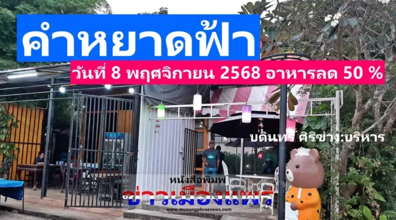 การเมืองสังคม พฤศจิกายน 8, 2025 admin บดินทร์ ศิริข่วง นักธุรกิจภาคบันเทิงและร้านอาหารของจังหวัดแพร่ เปิด “ร้านคำหยาดฟ้า”ในวันที่ 8 พฤศจิกายน 2568 เมนูอาหารลดครึ่งราคาจากราคาปกติ บดินทร์ ศิริข่วง นัก Read More