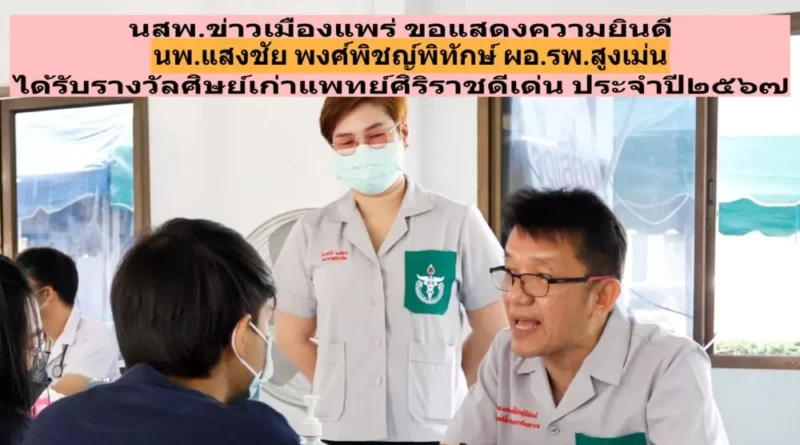 กองบรรณาธิการหนังสือพิมพ์ข่าวเมืองแพร่ ขอแสดงความยินดีที่ นายแพทย์แสงชัย พงศ์พิชญ์พิทักษ์ ผอ.รพ.สูงเม่นได้รับรางวัลศิษย์เก่าแพทย์ศิริราชดีเด่น ประจำปี ๒๕๖๗