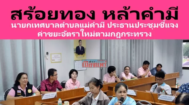 เทศบาลตำบลแม่คำมี ประชุมชี้แจง “ค่าธรรมเนียมการจัดการขยะมูลฝอยอัตราใหม่ตามกฎกระทรวง”พร้อมกับ กำนันตำบลแม่คำมี  ผู้ใหญ่บ้าน และประธาน อสม.12 หมู่บ้าน