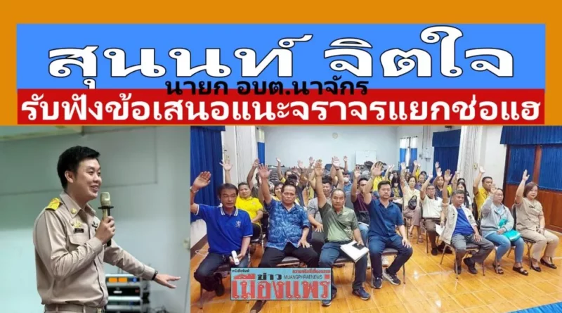 อบต.นาจักร รับฟังข้อเสนอแนะจาก ผู้นำท้องถิ่น ผู้นำท้องที่ และพี่น้องประชาชนชาวตำบลนาจักร เรื่องการจราจรแยกช่อแฮ ตำบลนาจักร อำเภอเมืองแพร่ จังหวัดแพร่