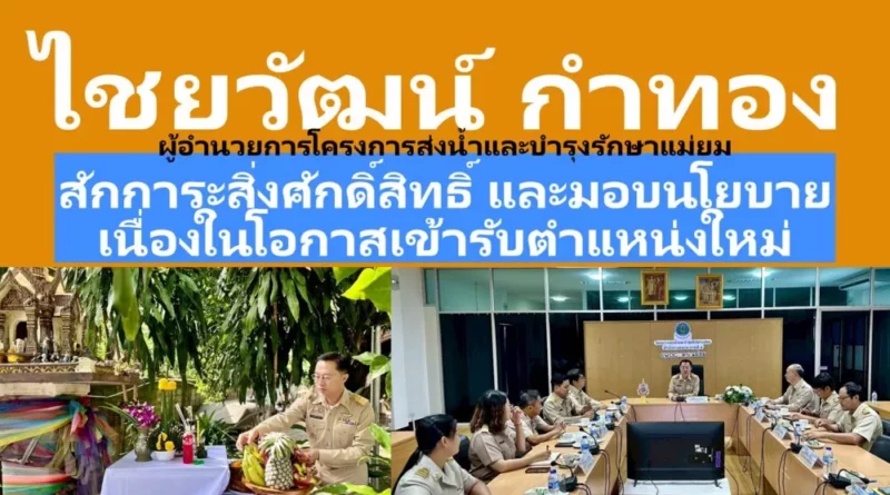 ไชยวัฒน์ กำทอง ผู้อำนวยการโครงการส่งน้ำและบำรุงรักษาแม่ยม สักการะสิ่งศักดิ์สิทธิ์ และมอบนโยบาย เนื่องในโอกาสเข้ารับตำแหน่งใหม่