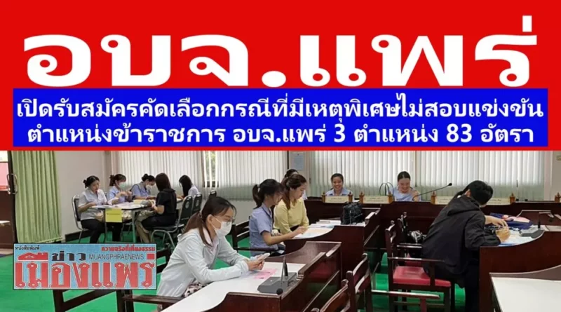 ข่าวทั่วไป กันยายน 16, 2025 admin อบจ.แพร่ เปิดรับสมัครคัดเลือกกรณีที่มีเหตุพิเศษไม่สอบแข่งขัน ดำรงตำแหน่งข้าราชการ อบจ.แพร่ 3 ตำแหน่ง 83 อัตรา อบจ.แพร่ เปิดรับสมั Read More